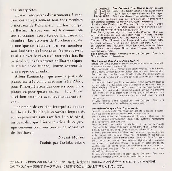 | Artist | Ludwig van Beethoven | Wolfgang Amadeus Mozart | Blasorchester der Berliner Philharmoniker | Alfons Kontarsky |