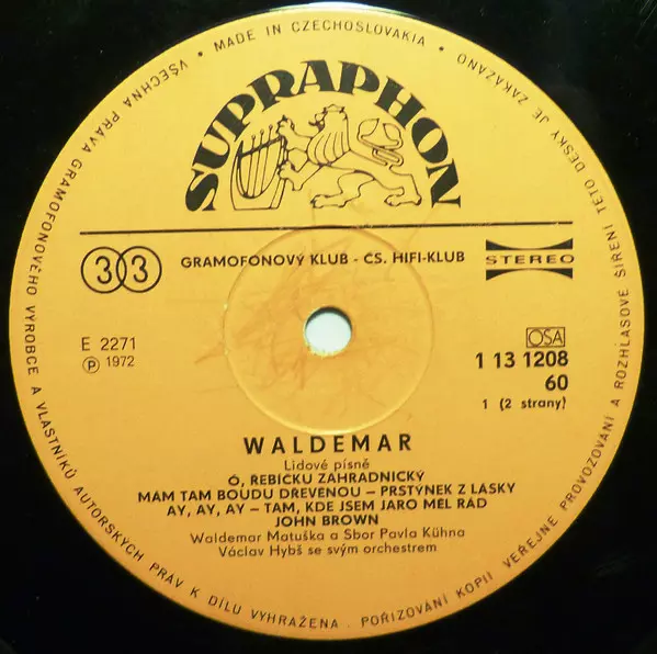 This album is a collection of traditional Czech folk songs sung by Waldemar Matuška. It was released in 1972 and is a great example of folk music of the time.