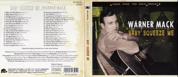 Warner Mack: Baby Squeeze Me version on CD in Standard edition. This particular edition was published in Germany in publishing company Bear Family Records on 29. August 2011. Album spans genres Folk, World, & Country, Country, Hillbilly and Honky Tonk. Gonna Shake This Shack Tonight.