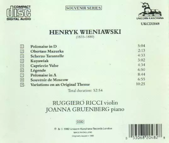 | Artist | Henryk Wieniawski | Ruggiero Ricci | Joanna Gruenberg |