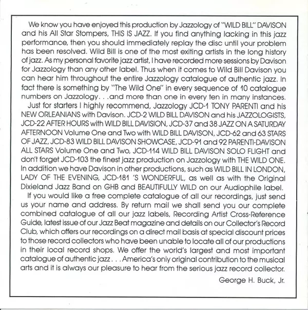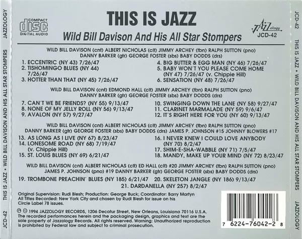 | Artist | Wild Bill Davison And His All Star Stompers |