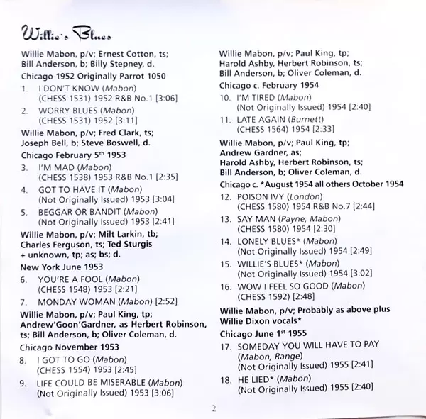 | Title | Willie's Blues: The Greatest Hits (1952-1957) |