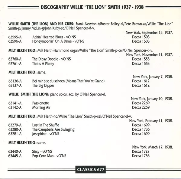 | Artist | Willie "The Lion" Smith |