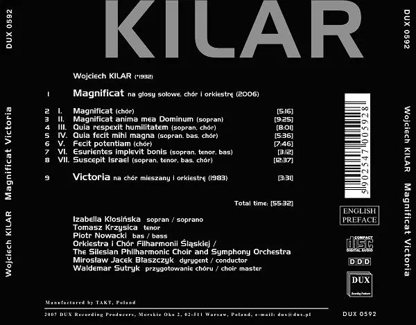 Artist | Wojciech Kilar | Izabella Kłosińska | Piotr Nowacki | Orkiestra Symfoniczna Filharmonii Śląskiej | Chór Filharmonii Śląskiej | Mirosław Jacek Błaszczyk | Waldemar Sutryk | Tomasz Krzysica |