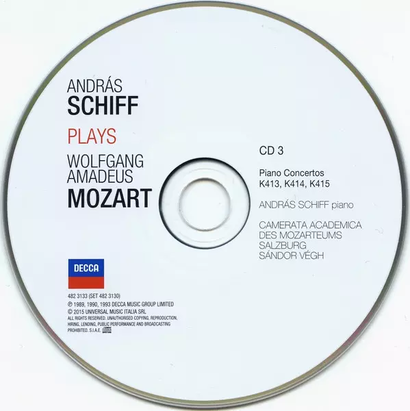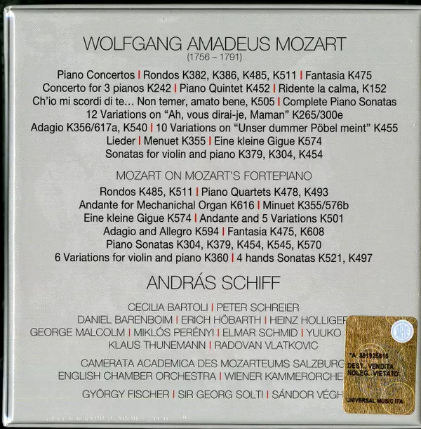 Wolfgang Amadeus Mozart: András Schiff Plays Wolfgang Amadeus Mozart version on 21CD/Box Set in Standard edition. This particular edition was published in Europe in publishing company Decca on 22. March 2016. Album can be classified in the genre Classical.