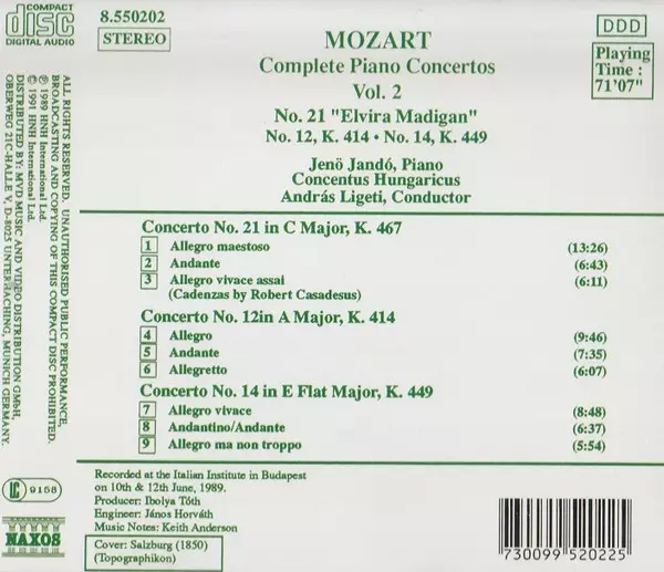 | Title | Complete Piano Concertos Vol. 2 – No. 21 "Elvira Madigan" • No. 12, K. 414 • No. 14, K. 449 |