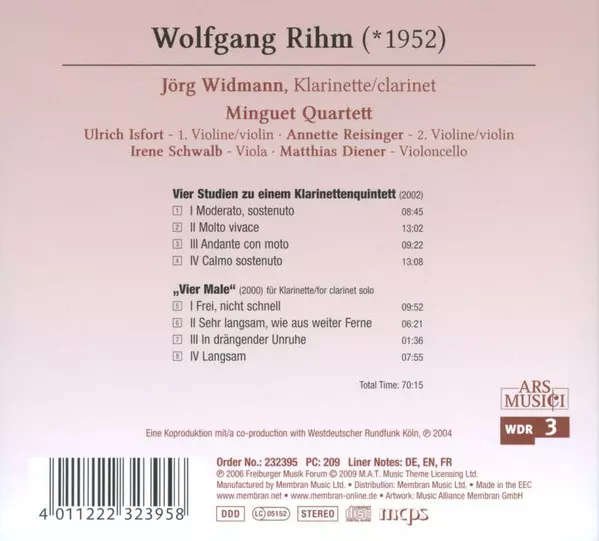 Artist | Wolfgang Rihm | Jörg Widmann | Minguet Quartett |