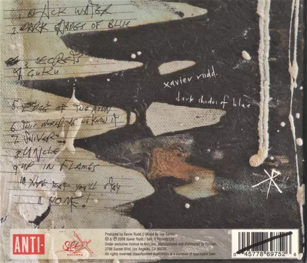 Xavier Rudd: Dark Shades Of Blue version on CD in Standard edition. This particular edition was published in USA in publishing company Anti- in cooperation with Salt. X Records on 19. August 2008. Album spans genres Rock, Folk, World, & Country, Acoustic and Folk Rock.