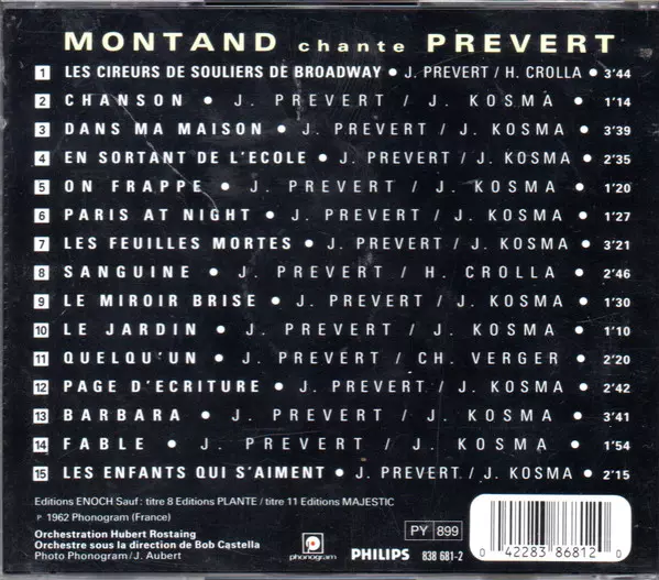 | Artist | Yves Montand | Jacques Prévert |
