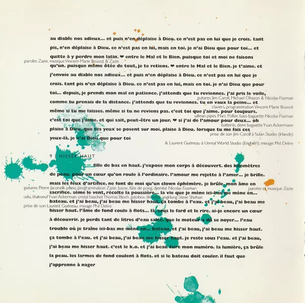 Keyboards Vincent-Marie Bouvot | Lyrics By Zazie | Mixed By Phil Delire | Music By, Melodeon [Accordéon Diatonique] Phil Baron | Recorded By [Prise De Son] Laurent Guéneau