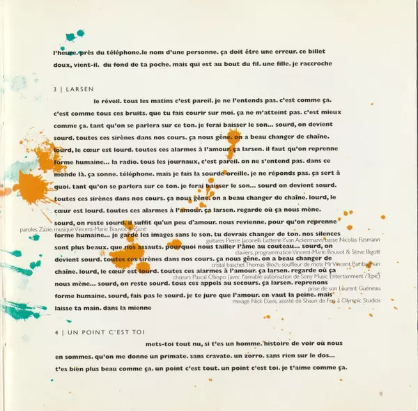 Guitar, Bass Pierre Jaconelli | Guitar, Keyboards, Programmed By Vincent-Marie Bouvot | Lyrics By Zazie | Mixed By Phil Delire | Music By Vincent-Marie Bouvot | Recorded By [Prise De Son] Laurent Guéneau